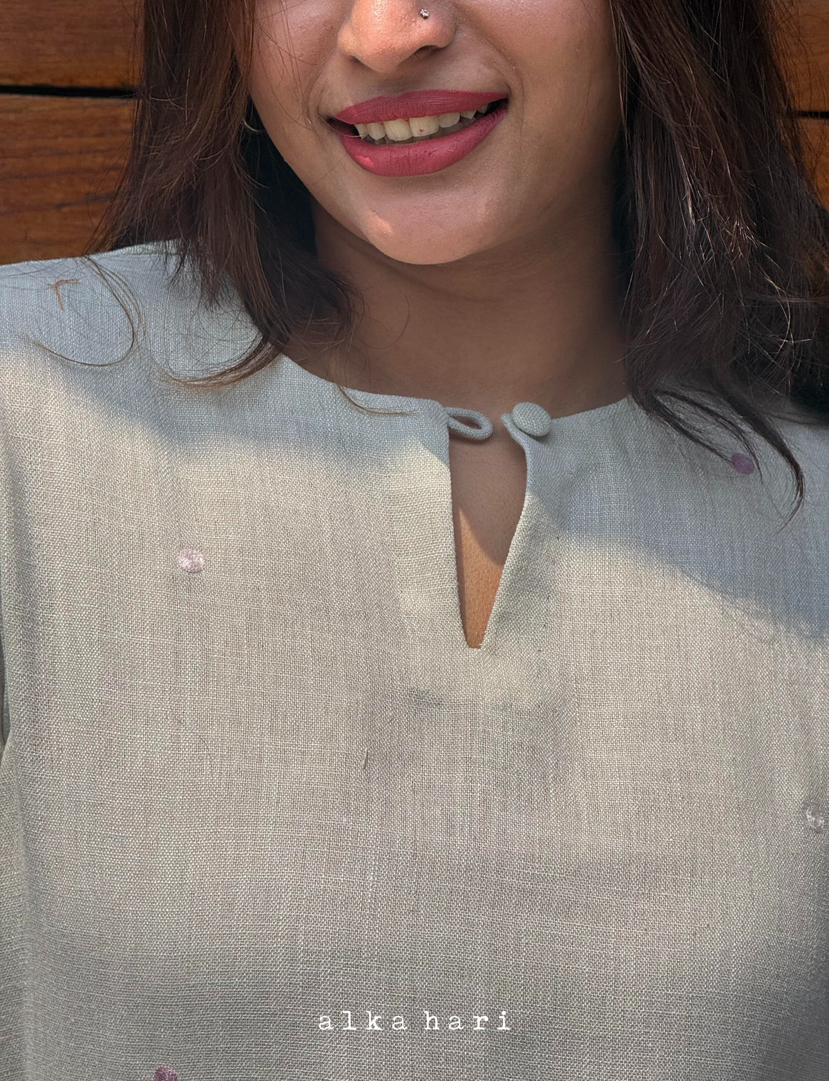 Light Grey Embroidered Linen Kurta - XS